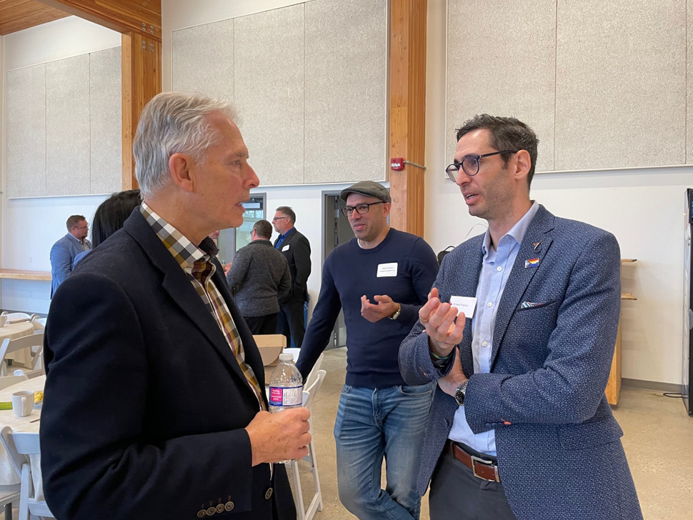 Alan Barkman (left) of Barkman Concrete speaks with Arnaud Franco, director of Economic Research at the BDC.